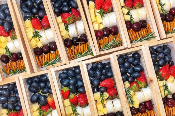 Customised fresh fruit & cheese grazing cups for <span data-mce-fragment="1">sustainable activewear brand terrae</span>
